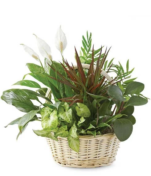 Our classic mixed dish garden plant delivery is hand-arranged with a variety of fresh green plants and flowers. With dish gardens for sale you can easily add clean style to any home or office décor. If you’re looking for gift ideas for men, why not send flowering planters instead of flower gifts? They can enjoy this live present much longer.