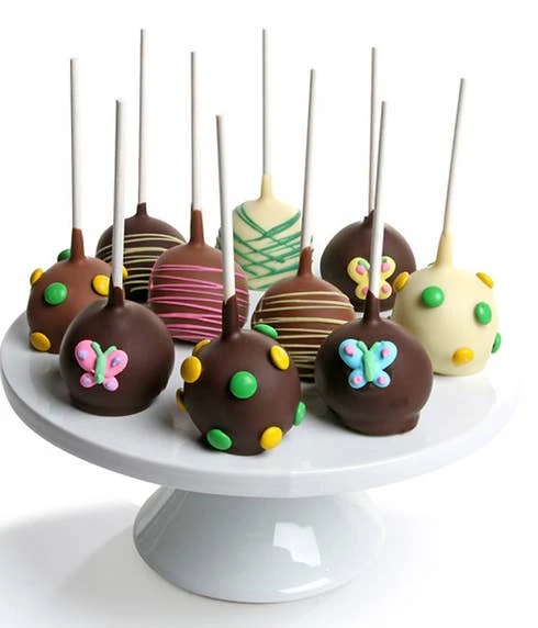 Treat yourself or a lucky loved one to some extra special, super sweet, Chocolate Covered Cake Pops decorated for Spring! These delicious bites of sweet cake and buttercream frosting are dipped in milk, white and dark chocolate to suit any taste and then carefully hand decorated with candies, chocolate drizzles and adorable edible butterfly accents.
